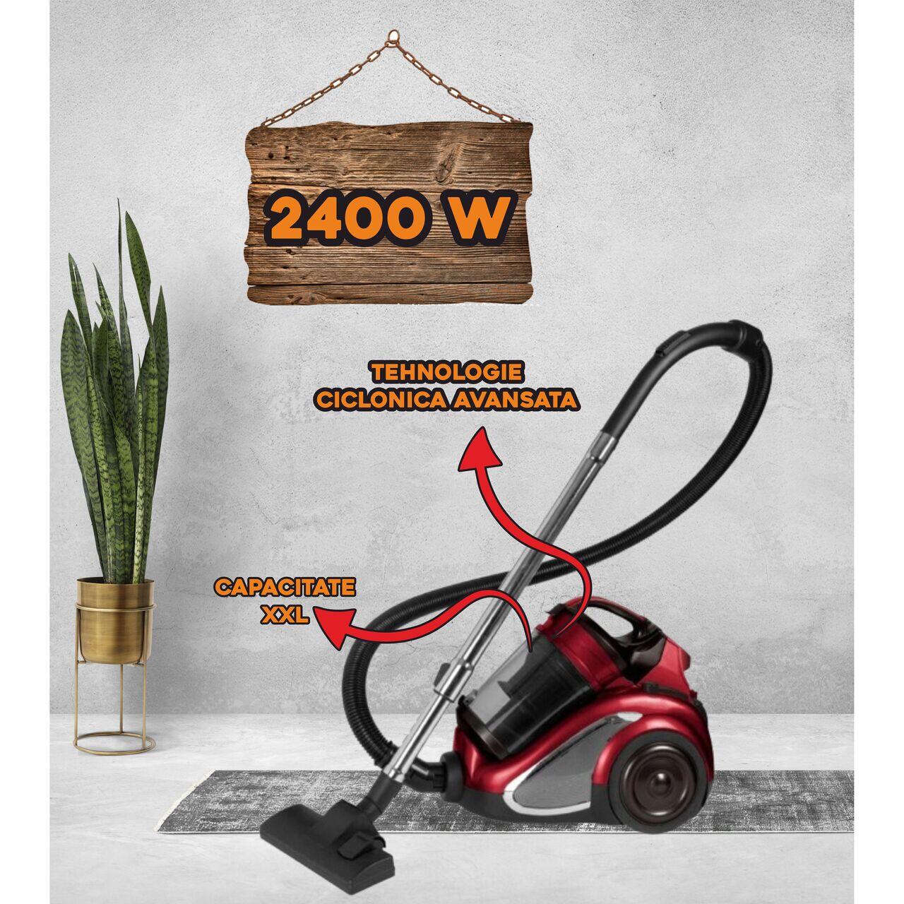 Porszívó zsák nélkül Hausberg HB-2820RS, 2200 W, 4,5 L, Fekete/Vörös