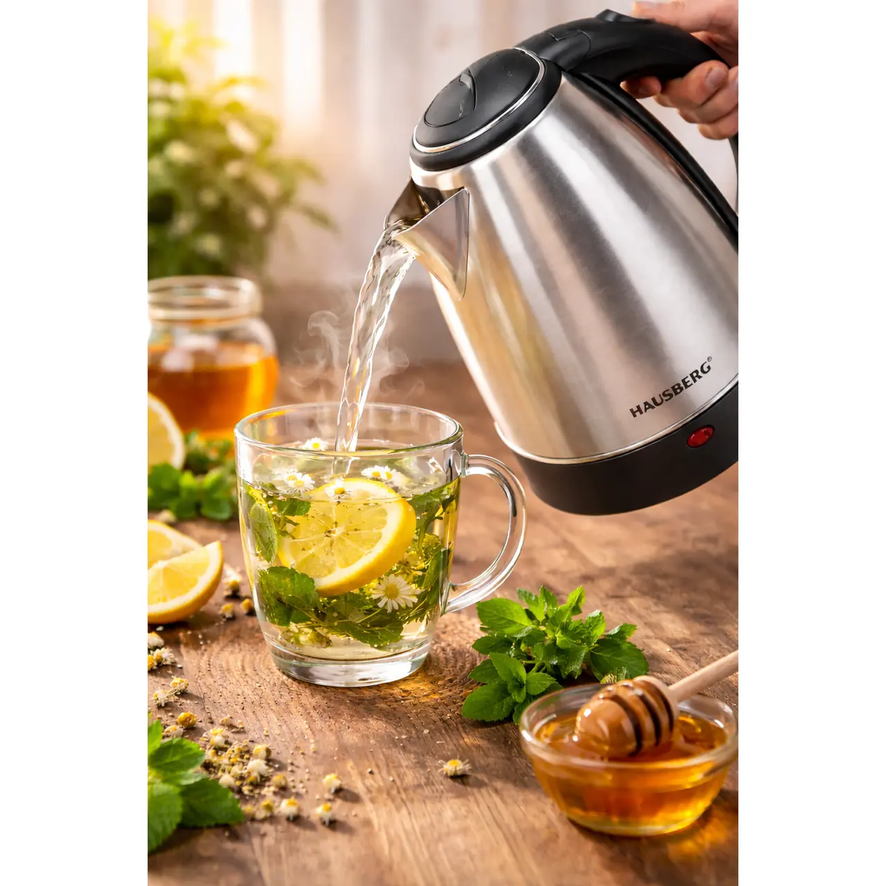 Cana fierbător inox Hausberg HB-3615, 1500 W, 1.8 L – Rapidă, elegantă și sigură