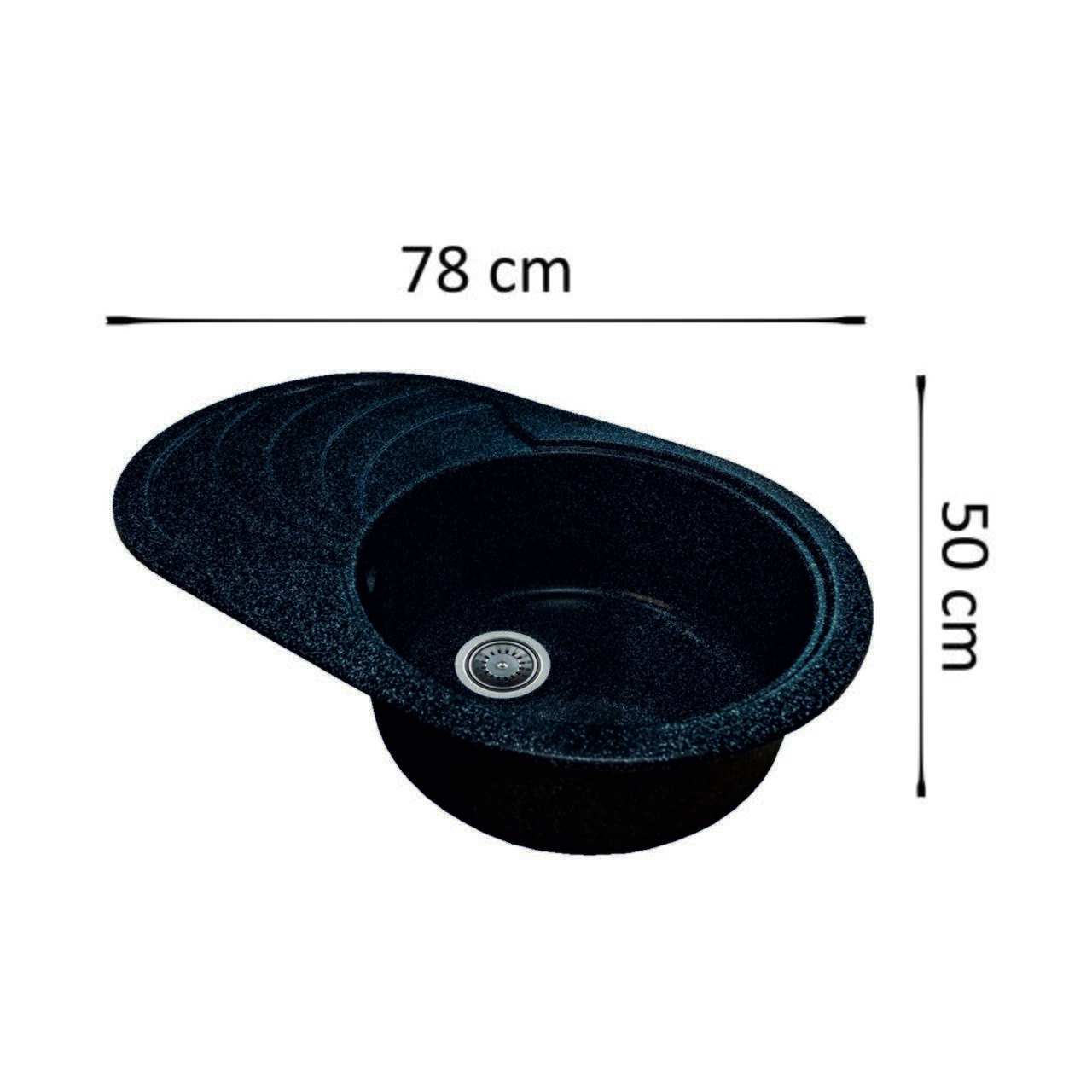 Forma rotunda, de culoarea neagra, o singura cuva, cu adancimea de 19 cm si diametrul cuvei de 40 cm, lungime totala 78 cm si latime totala 50 cm.