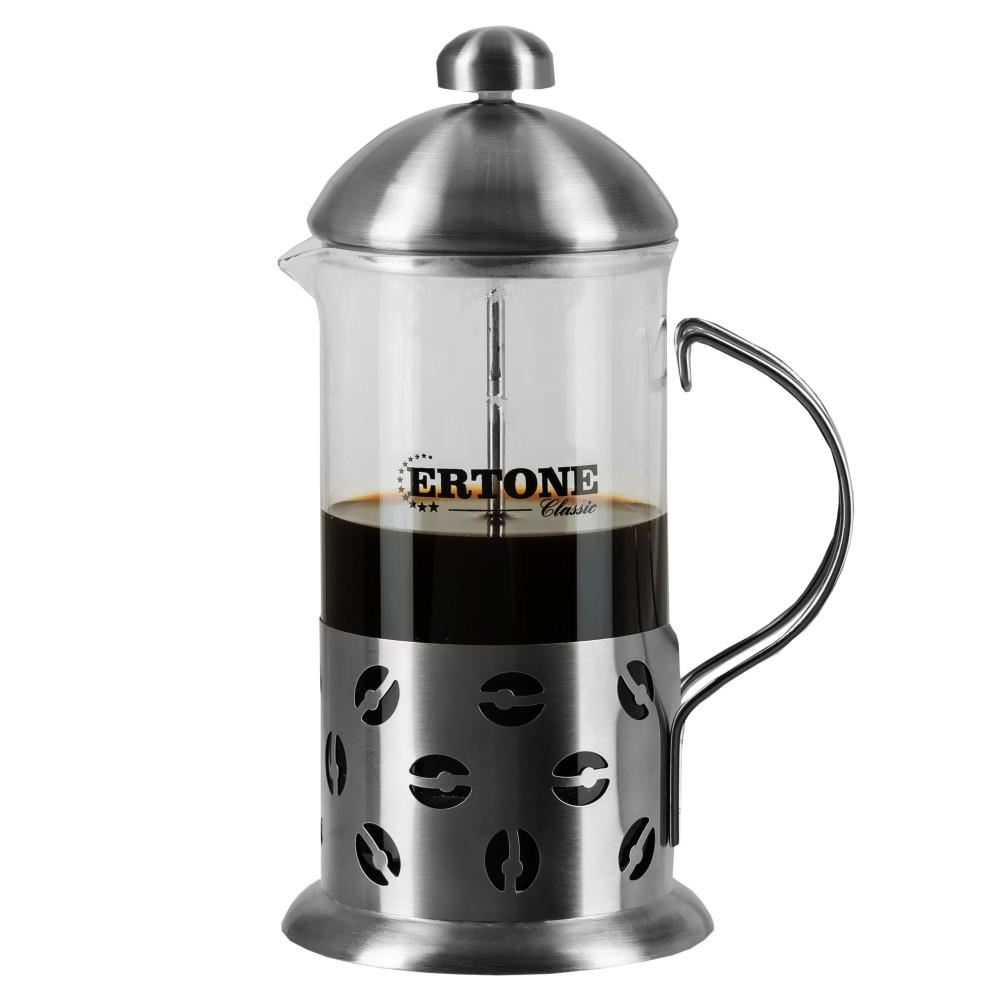 Cafetiera presa franceza ERT-MN 126 este un infuzor cafea sau ceai, fabricata dintr-o sticla borosilicata, rezistenta la caldura, ce va ajuta sa preparati usor cafea sau ceai. Adaugati cafea, ceai, zahar, turnati apa fierbinte, impingeti pistonul si bucurati-va de o cafea sau un ceai fierbinte. Mecanismul interior, filtrul, pistonul si capacul sunt fabricate din otel inoxidabil. Materiale: sticla rezistenta la temperaturi inalte si otel inoxidabil.