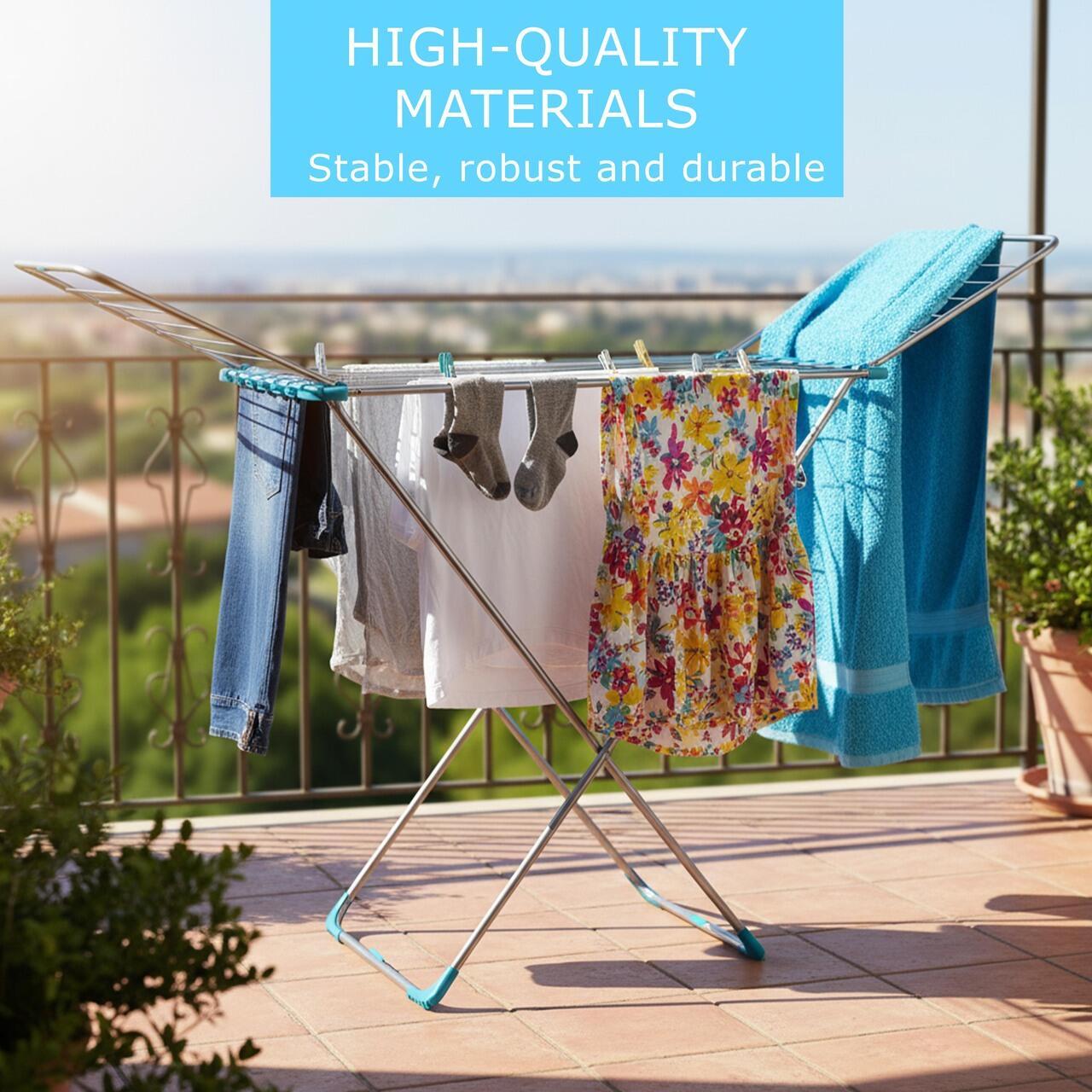 Uscator de rufe clasic, cu picioare in X, pliabil, Vopsire in camp electrostatic cu tratament anti coroziv, Capacitatea de uscare este de 18 m.