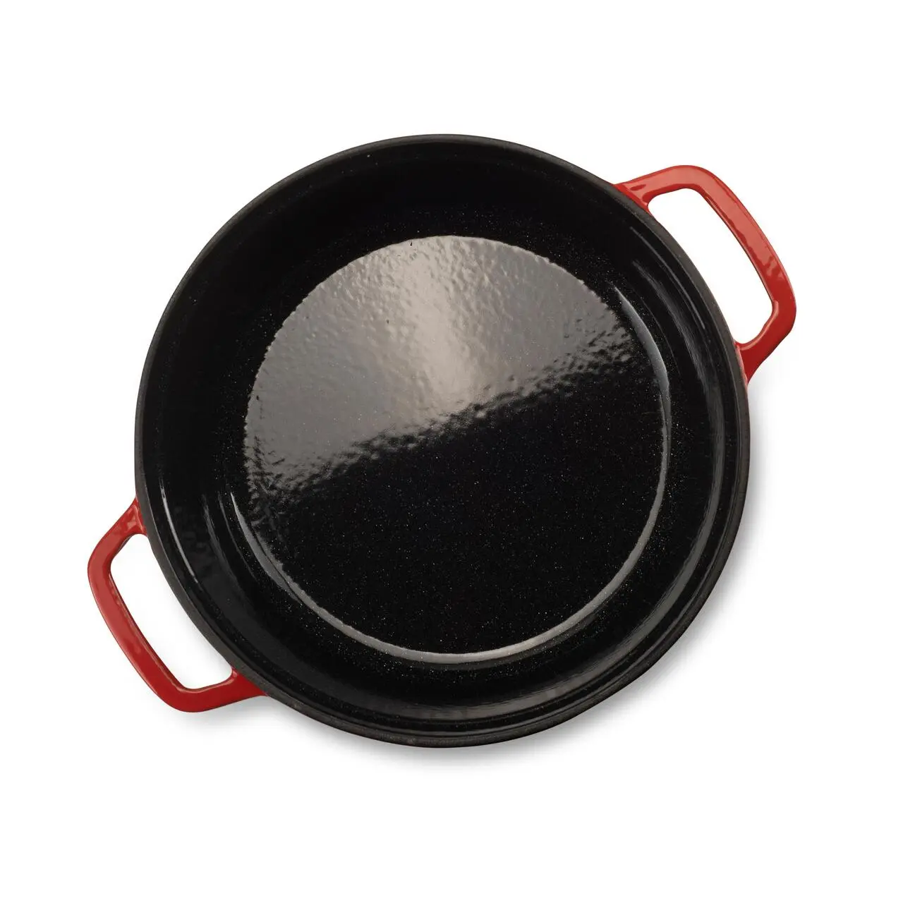 Exteriorul este finisat cu un strat dublu de smalț roșu, oferind protecție împotriva uzurii și un aspect elegant.