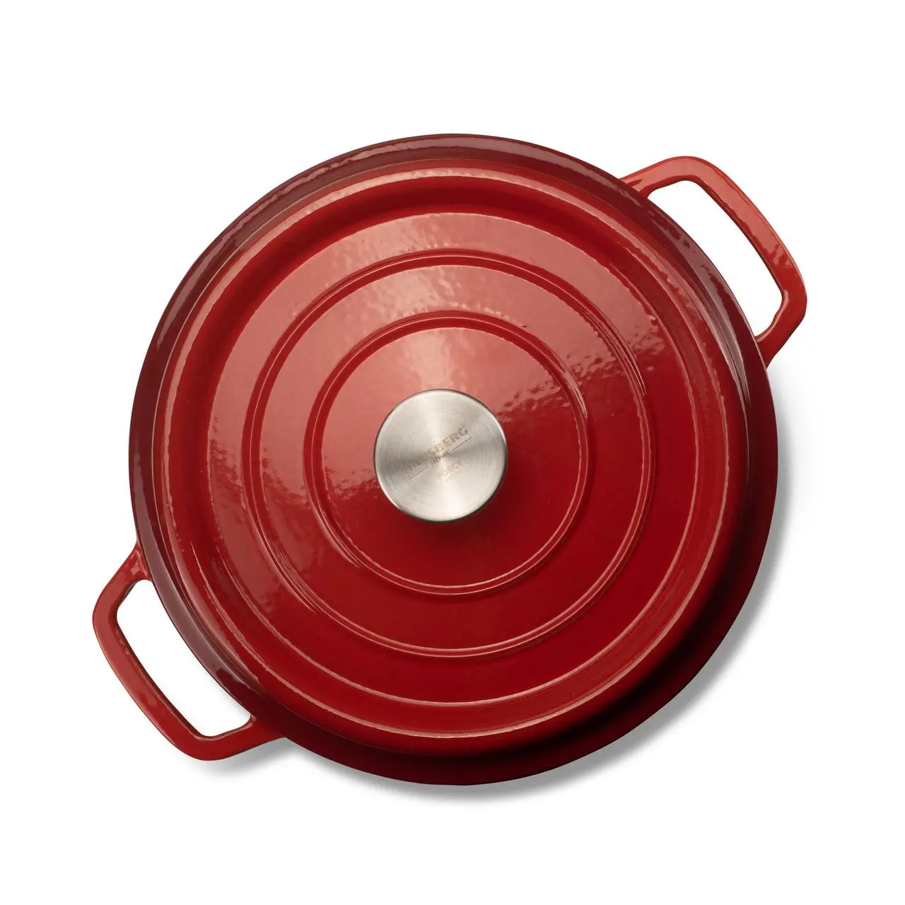 Oala fonta emailata, diametru 28 cm, adancime 13 cm, greutate 6.5 kg, interior antiaderent, capacitate 6l, Hausberg H748. HAUSBERG HB-H748 este o oală din fontă emailată, robustă și versatilă, ideală pentru preparate care necesită o distribuție uniformă și constantă a căldurii.