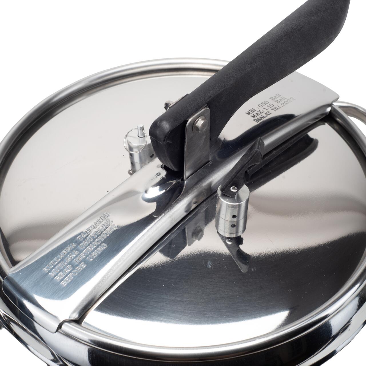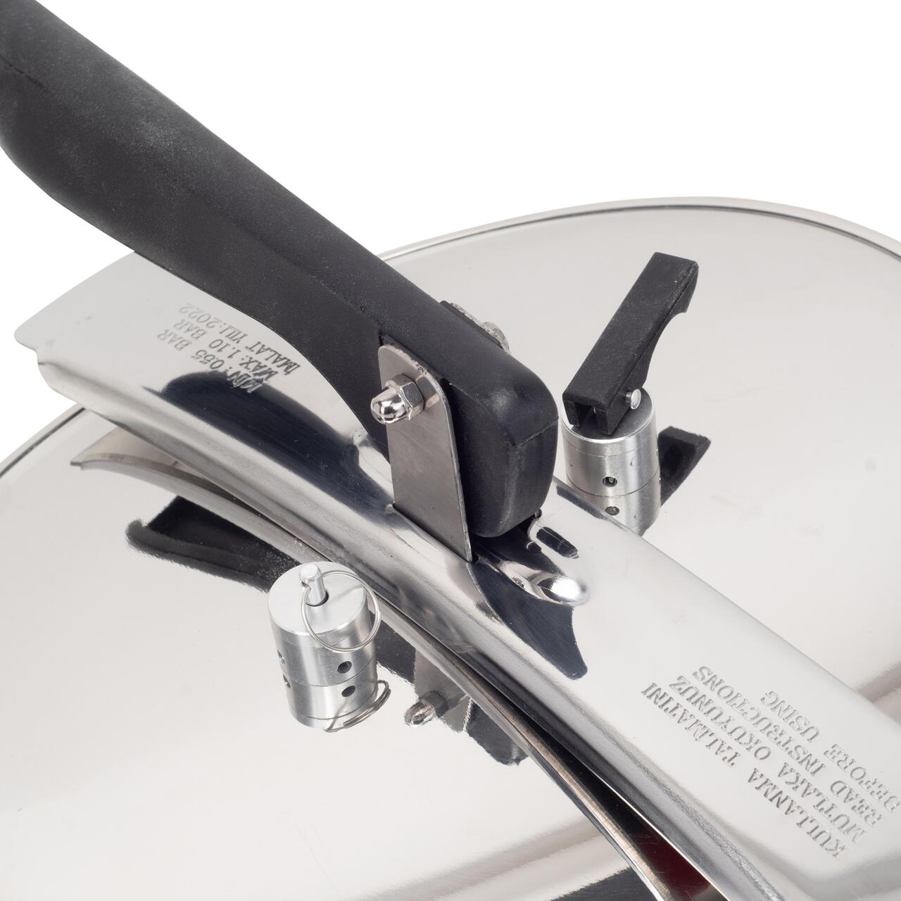 Pastreaza valorile nutritive si minerale din alimente. Manerele sunt nituite si parte integranta din produs.. Indiferent daca esti sau nu un bucatar profesionist, oala sub presiune, te va ajuta sa pregatesti mancaruri extraodinare, fara prea mult efort. Incalzeste rapid si mentine eficient temperatura datorita, datorita bazei in 3 straturi, scade considerabil timpul de fierbere. Capacul dispune de doua supape, una fiind pentru siguranta.