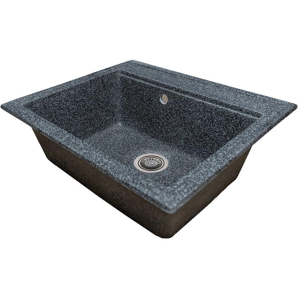 Sanitec Vena SN9034NG konyhai mosogató csomag, gránit-kompozit, matt, 1 db téglalap alakú kád, 60 x 50 cm, HAUSBERG HB-F5000 konyhai csaptelep, egykaros, matt kivitel, Fekete fürdőszobai mosogató...